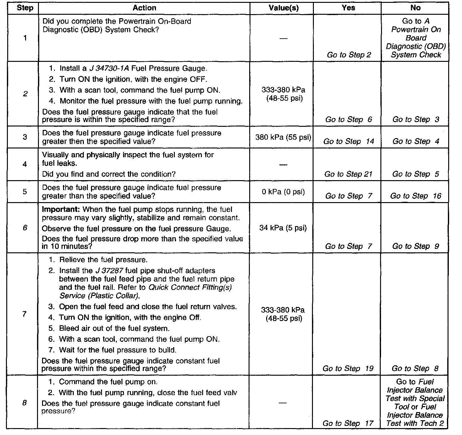2. Tests the fuel systems ability to achieve a specific fuel pressure range. It may be necessary to cycle the fuel pump several times to achieve the pressure range.