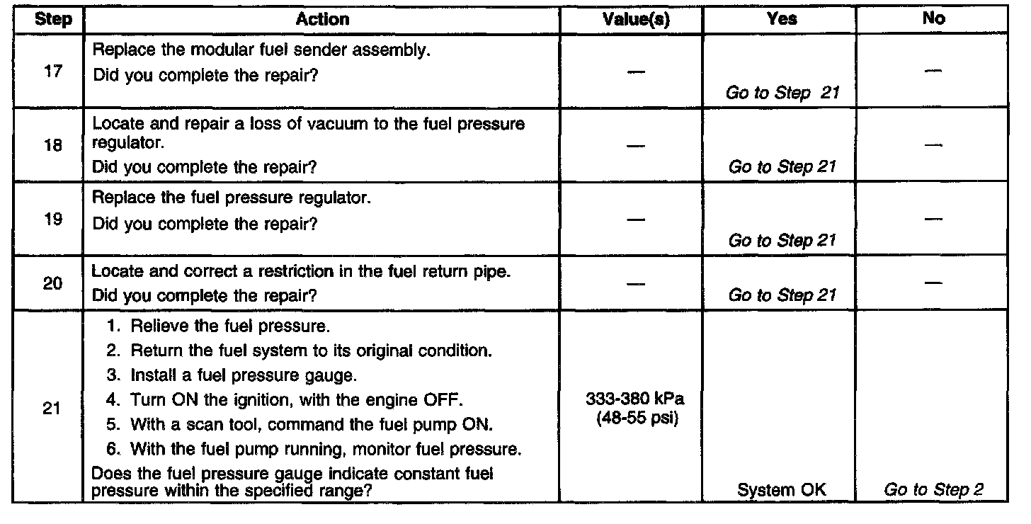 14. This test determines if the high fuel pressure is due to a restricted fuel return pipe or fuel pressure regulator A rich condition may cause a DTC P0132 or DTC P0172 to set. Driveability conditions associated with rich conditions can include hard starting (followed by black smoke) and a strong sulfur smell in the exhaust.