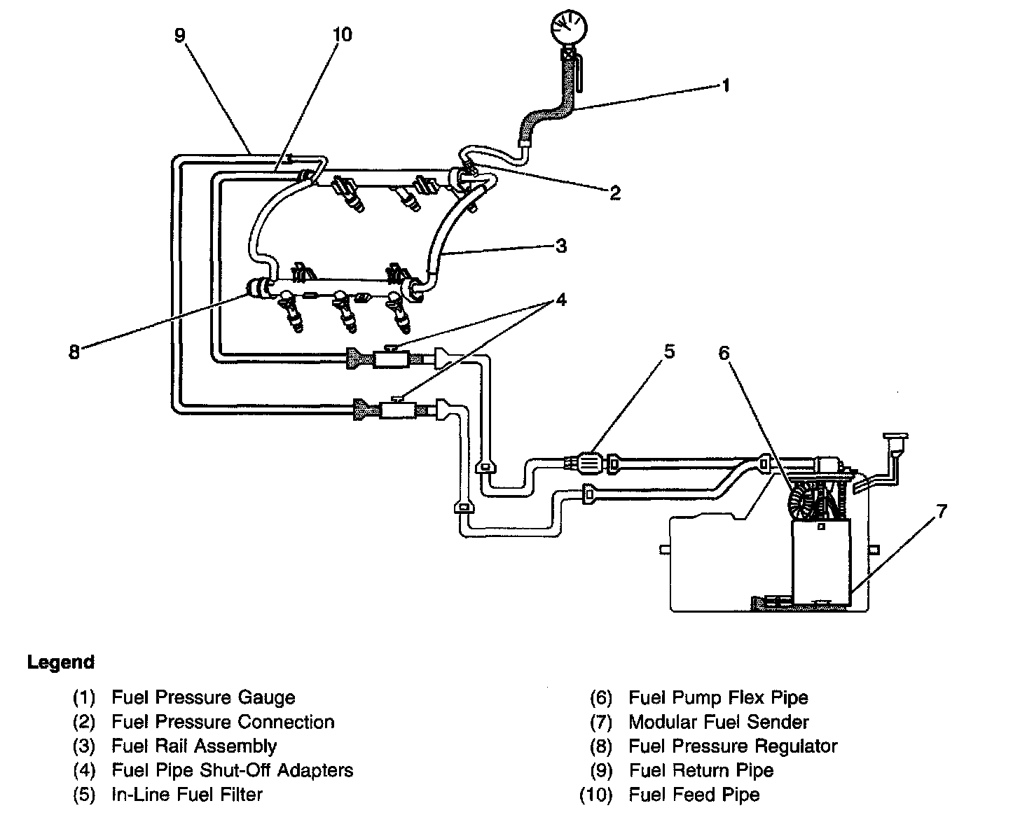 6. A fuel system that drops more than 5 psi in 10 minutes has a leak in one or more areas.