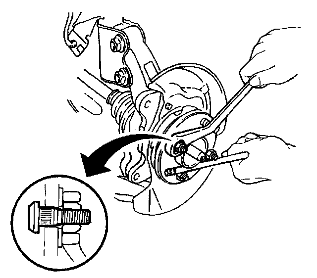 3. Remove the brake caliper bracket with the brake caliper. Refer to Brake Caliper Bracket Replacement - Front in Disc Brakes.