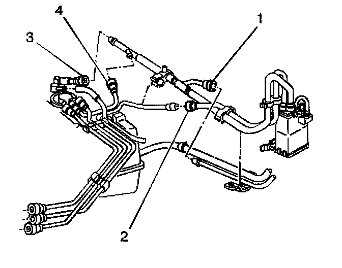 8. Disconnect the [1][2]EVAP vapor pipe (4) at the rear of the fuel tank.