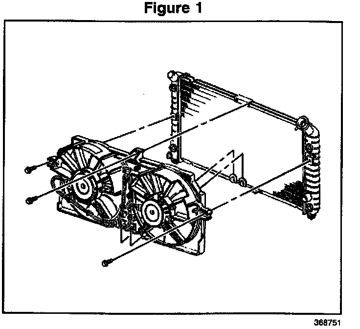 6. Remove the main electrical connector to the cooling fans and the bolts retaining the cooling fan assembly. Refer to Figure 1.
