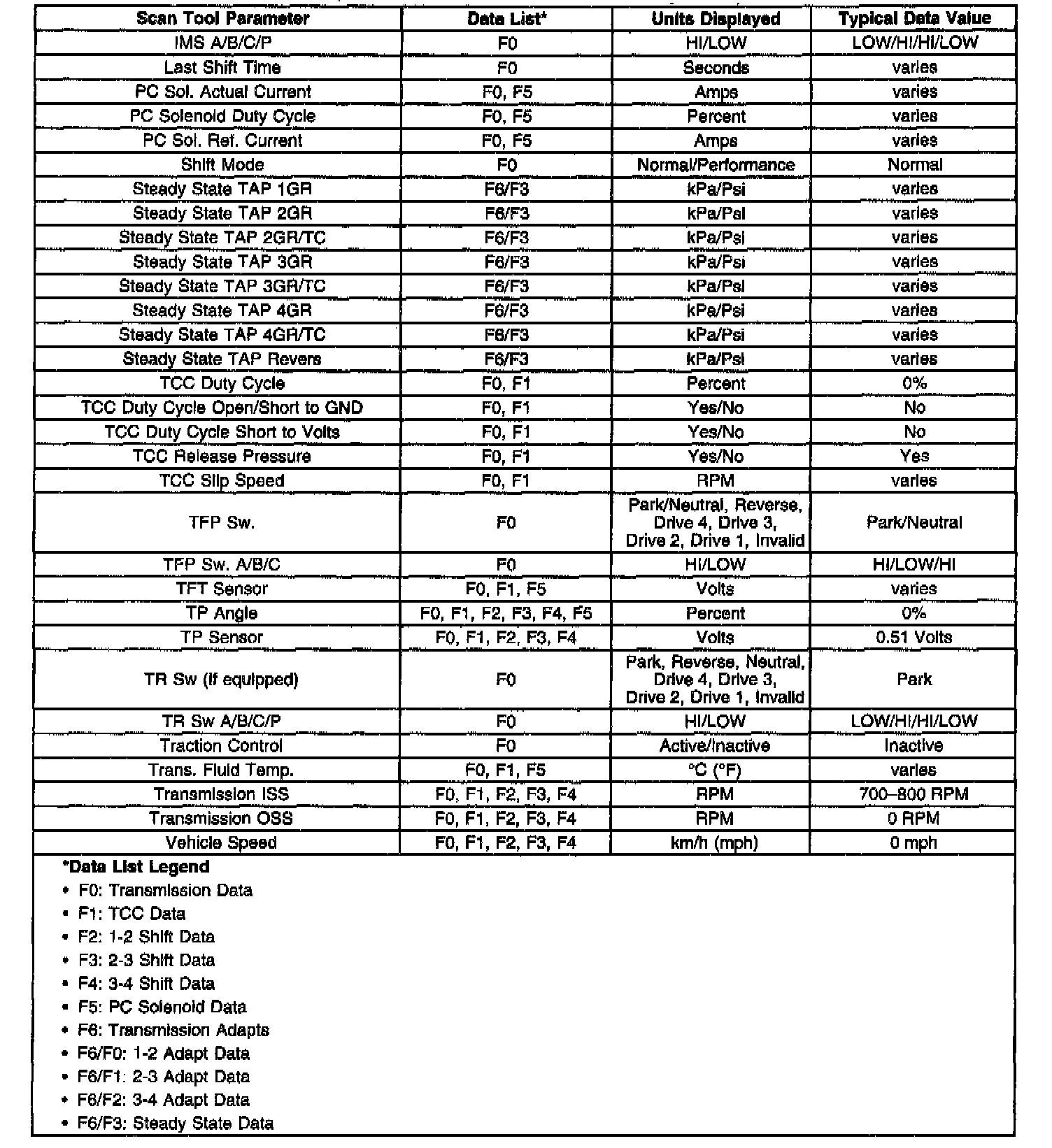 Only the parameters listed below are used for diagnosing. If a scan tool displays other parameters, the values are not recommended by General Motors for use in diagnosis.