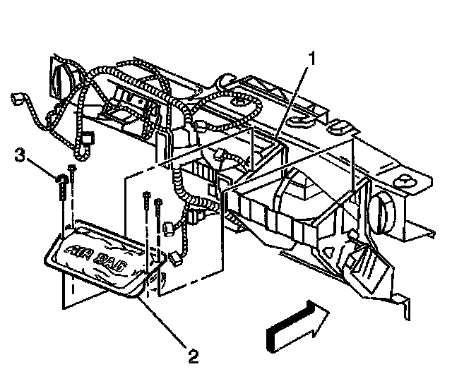 3. Remove the inflatable restraint IP module mounting fasteners (3).