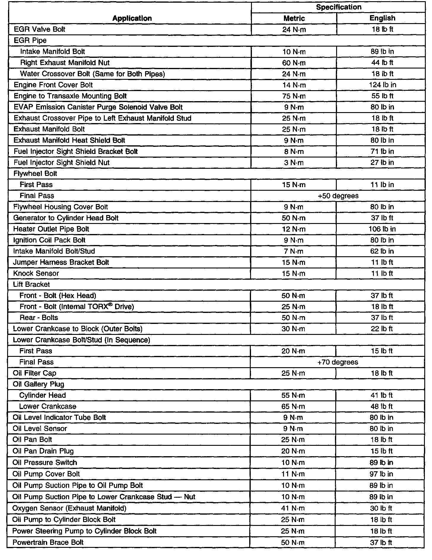 Fastener Tightening Specifications