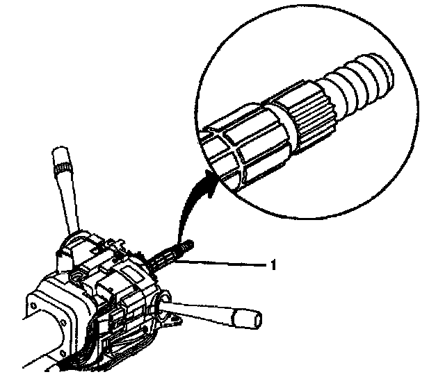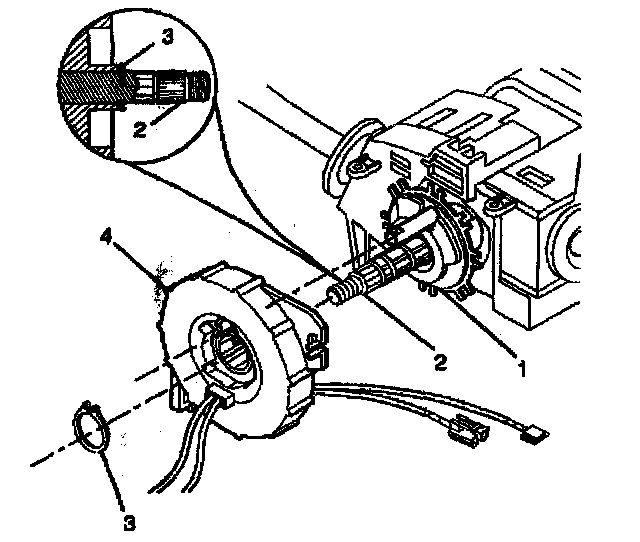 4. Align the SIR coil assembly (4) with the horn tower on the turn signal cancel cam assembly (1). The new SIR coil assembly will be precentered. Pull the tab and remove.
