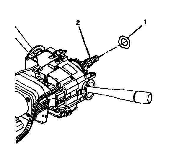 7. Install 1 wire harness strap (2) into the steering column tilt head assembly (1). Install wire harness straps (2) onto the wire harness assembly.