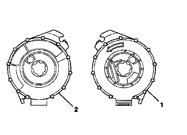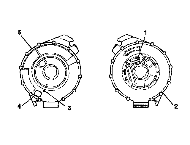 5. For no centering window on the front side (2) of the SIR coil assembly and no spring service lock on the back side (1), perform the following steps: