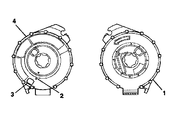 3. If the front (4) of the SIR coil has a centering window (3) and no spring service lock on the back side (1), perform the following steps: