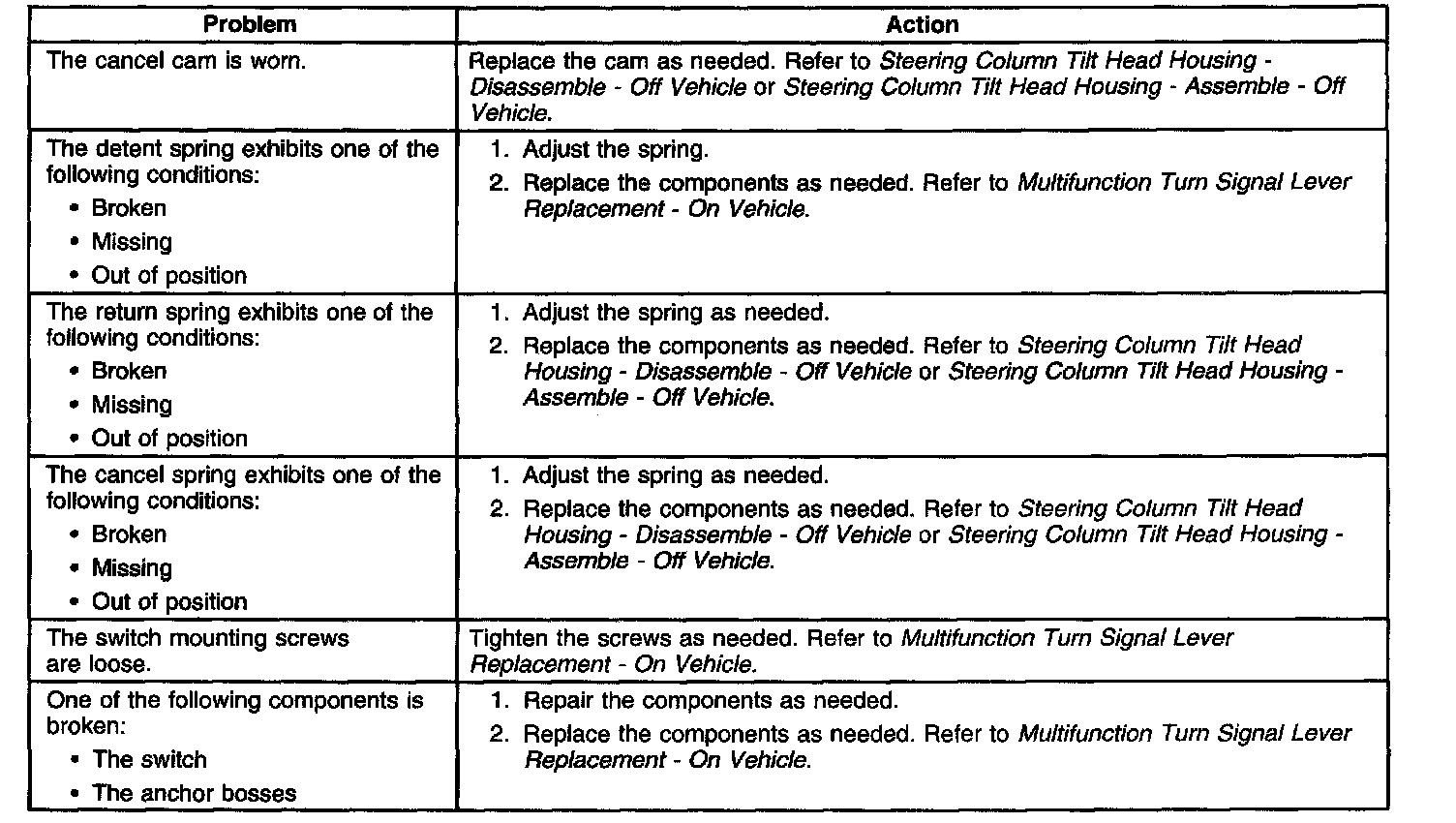 Turn Signal Switch Does Not Cancel - Tilt Column