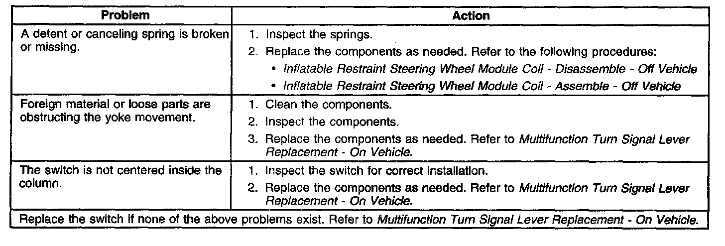 Turn Signal Switch Does Not Stay In Turn Position - Tilt Column