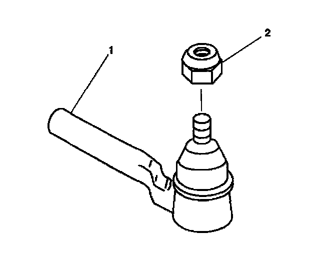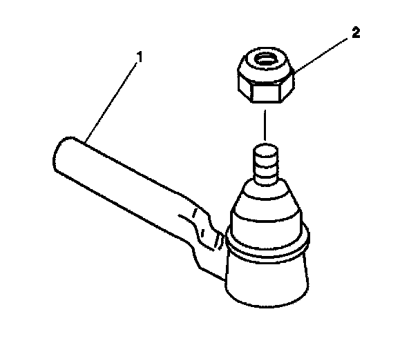 4. Install the prevailing nut (2) to the outer tie rod assembly (1).