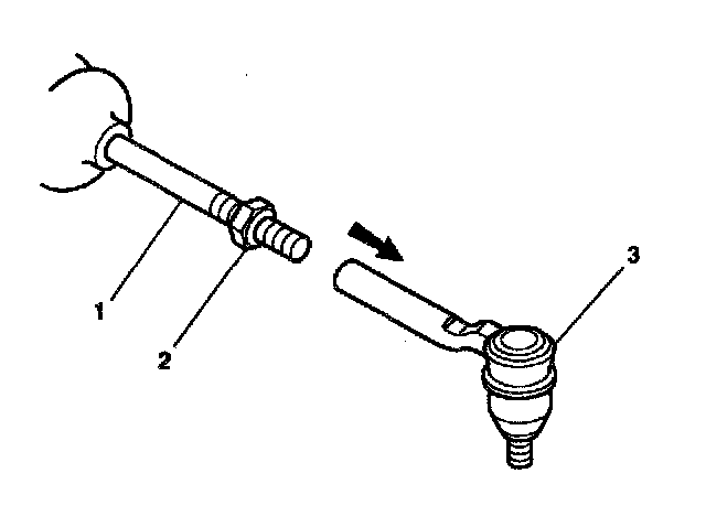 6. Remove the outer tie rod assembly (3) from the inner tie rod assembly (1).