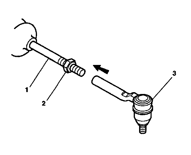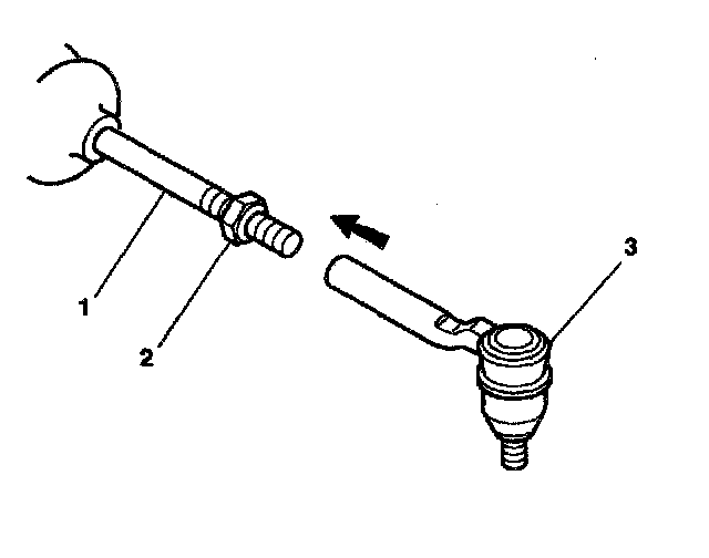 1. Install the outer tie rod assembly (3) to the inner tie rod assembly (1).