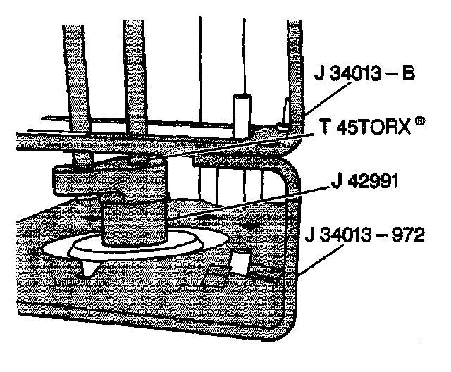 4. Use a 45 Torx(R) socket in order to hold the strut shaft. Remove the strut mount nut by turning with J 42991.
