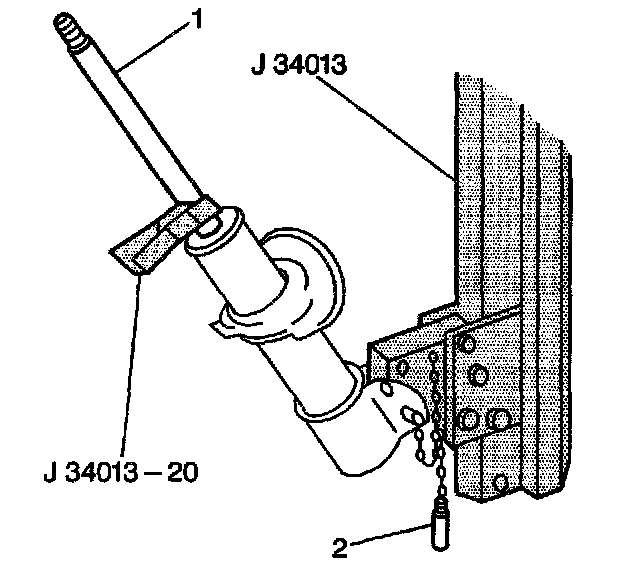 3. Insert the J 34013-197 Alignment Rod into the strut (1) in order to guide the strut shaft.