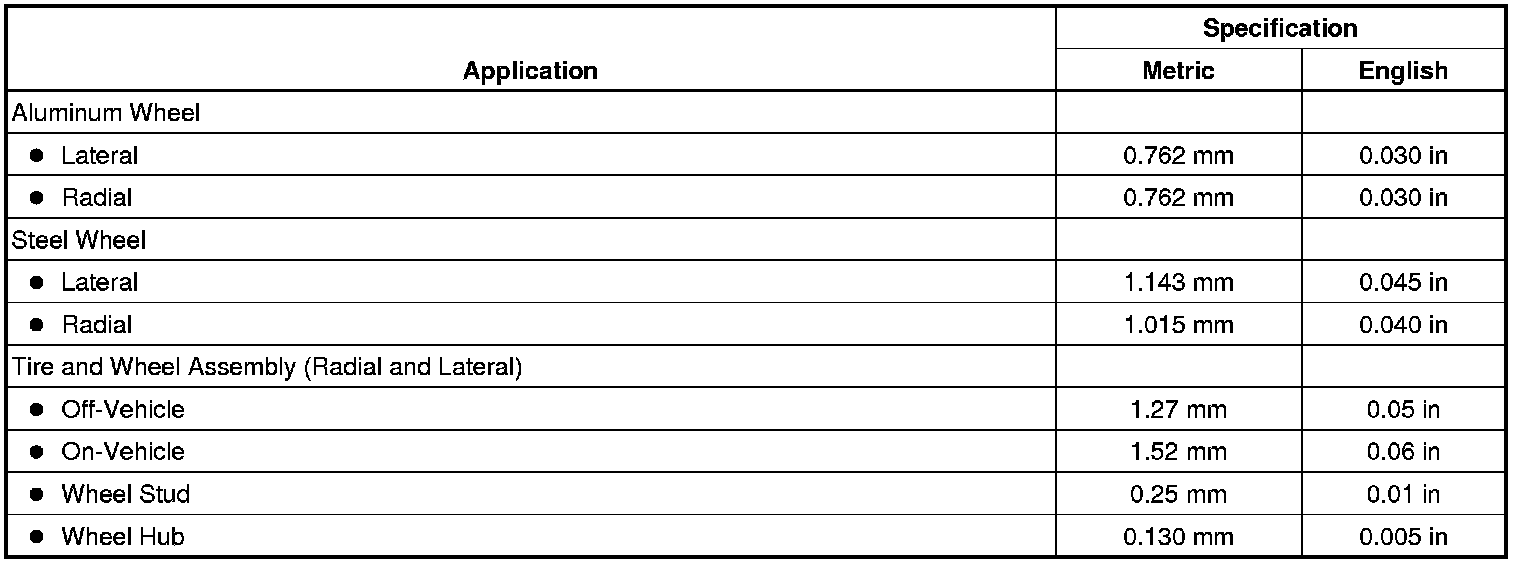 Tire and Wheel Runout Specifications
