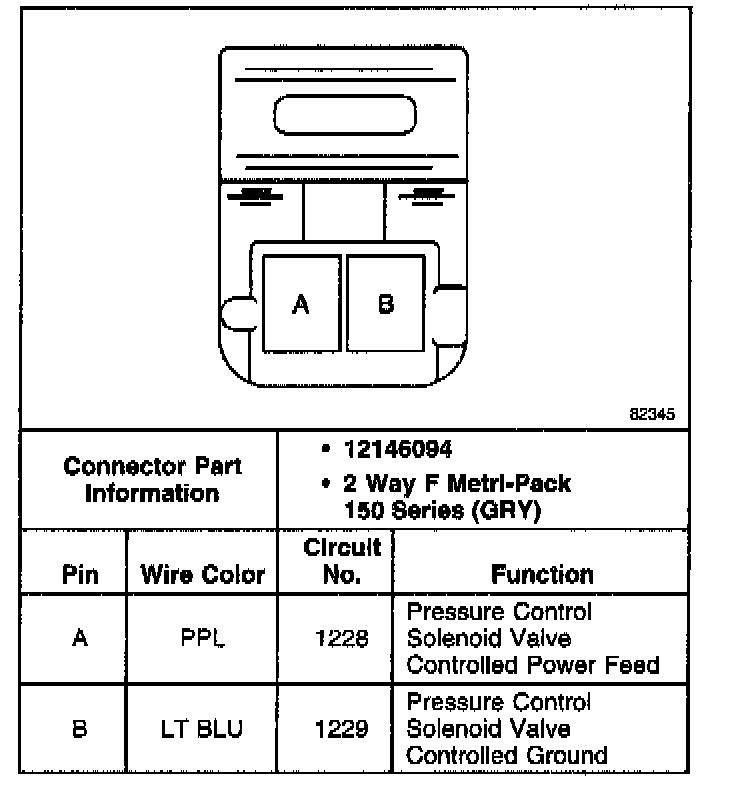 Pressure Control Solenoid Valve Connector, Wiring Harness Side