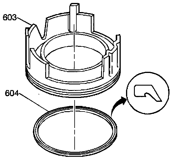 3. Remove the outer seal (604) from the fourth clutch piston (603).