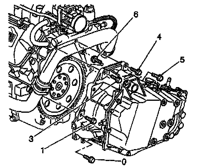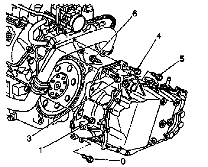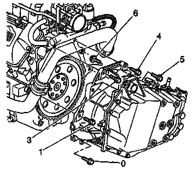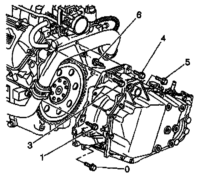 3. Install the lower transaxle bolts into positions (0,1,3,4, 5 and 6).