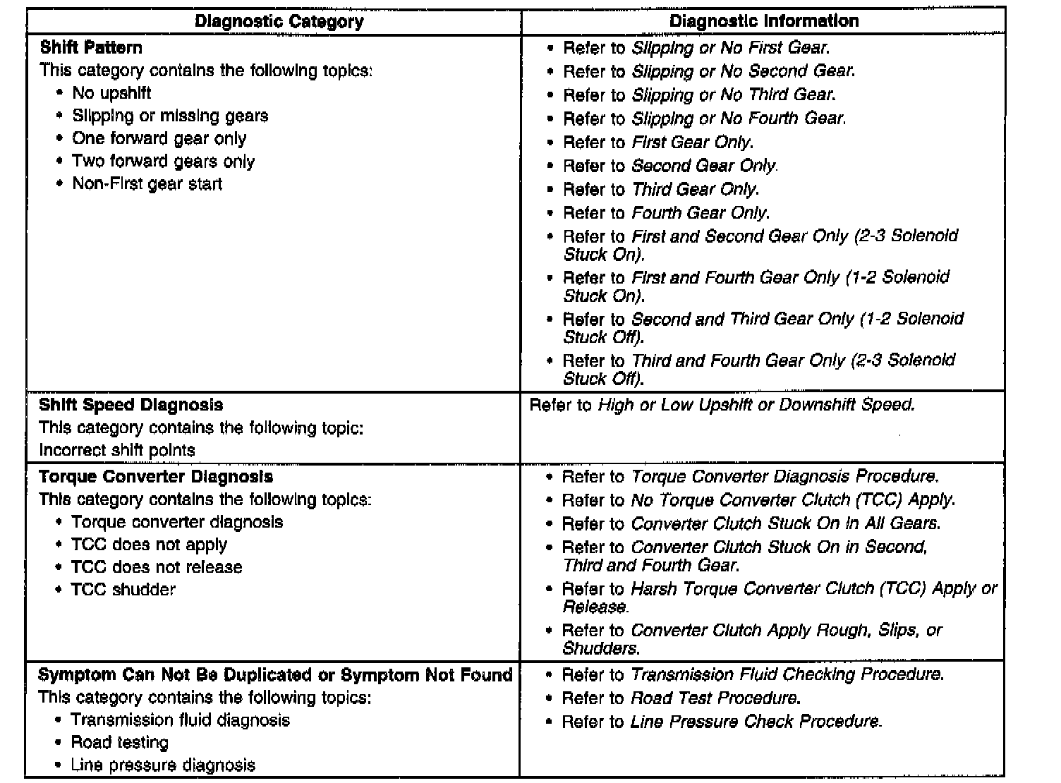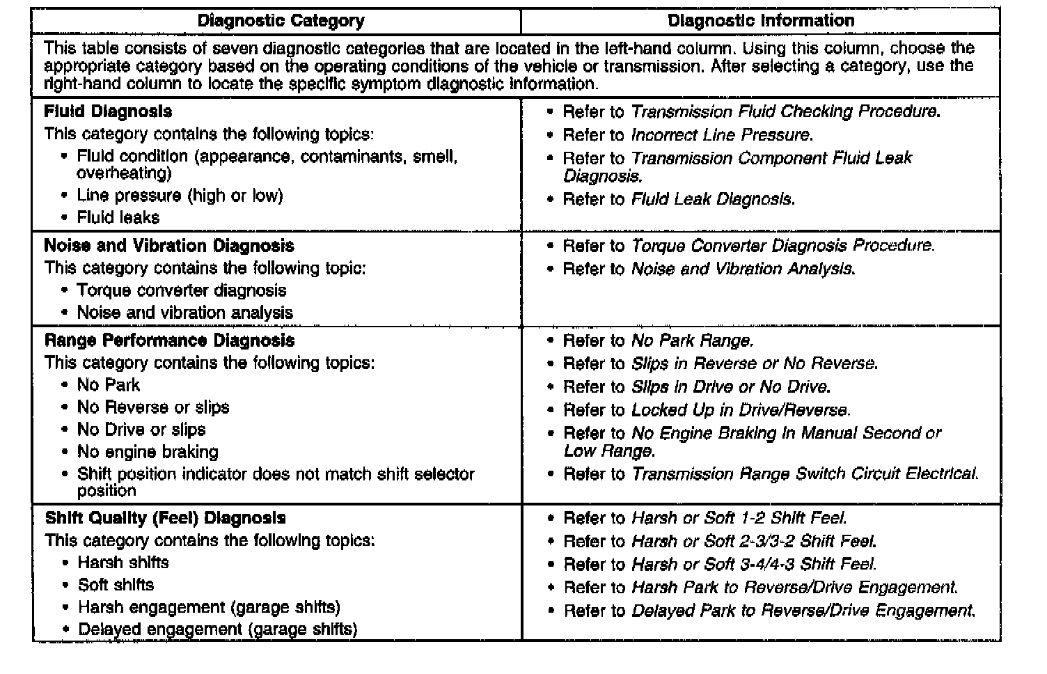- Symptoms - Automatic Transmission