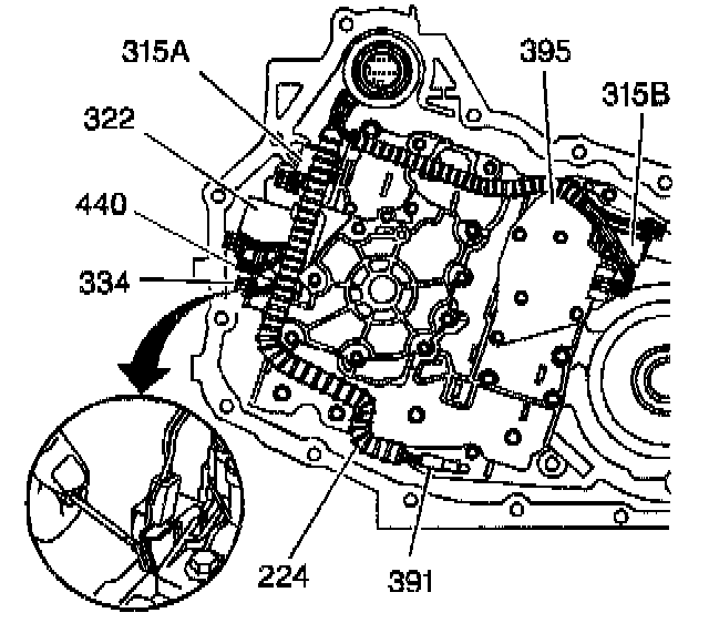 2. Use a small flat-bladed tool in order to remove the wiring harness from the solenoid valve(s) (315A, 315B, 322, 334 and/or 440), TFP manual valve position switch (395) and/or the temperature sensor(391).