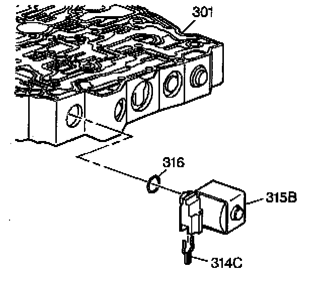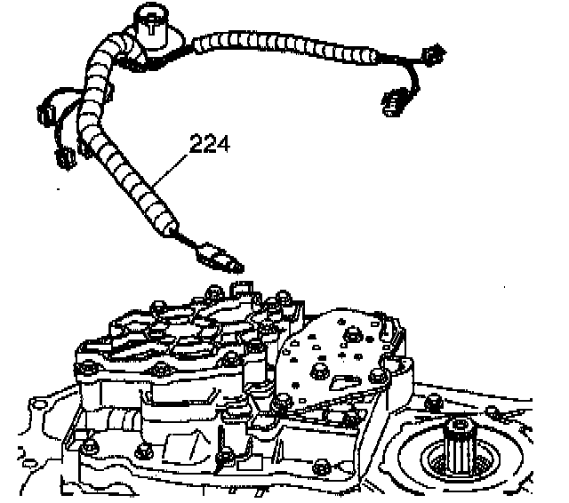 5. Install the wiring harness to the solenoid valve(s) (315A, 315B, 322, 334 and/or 440), TFP manual valve position switch (395) and/or the temperature sensor (391).