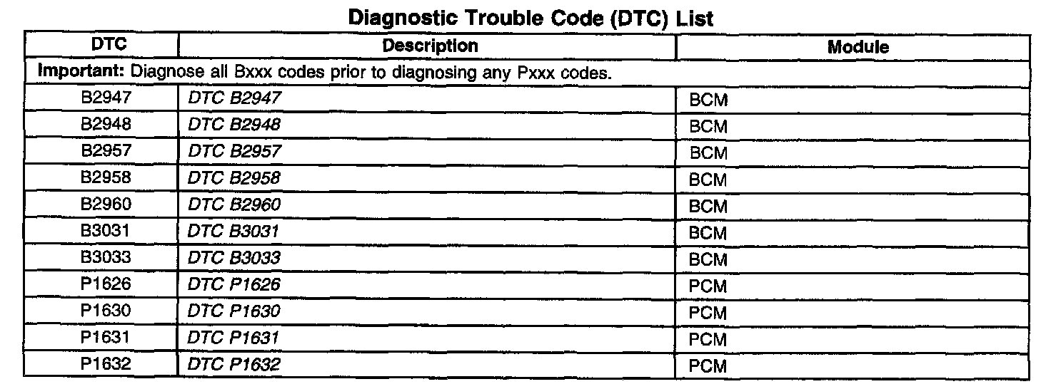 A L L Diagnostic Trouble Codes ( DTC )