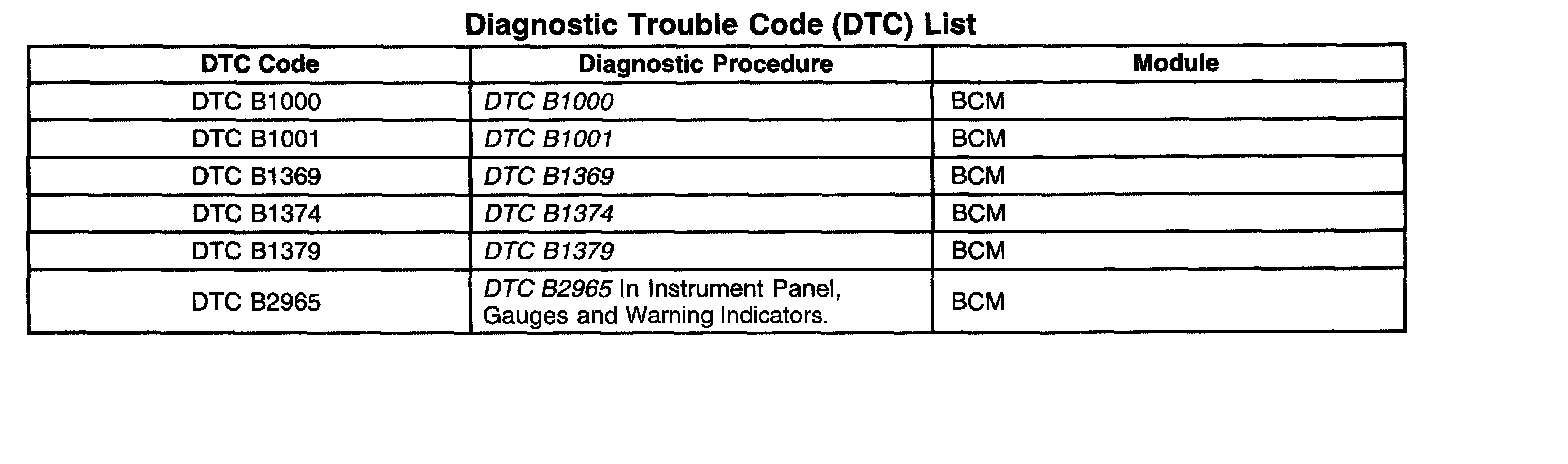 Diagnostic Trouble Code (DTC) List: