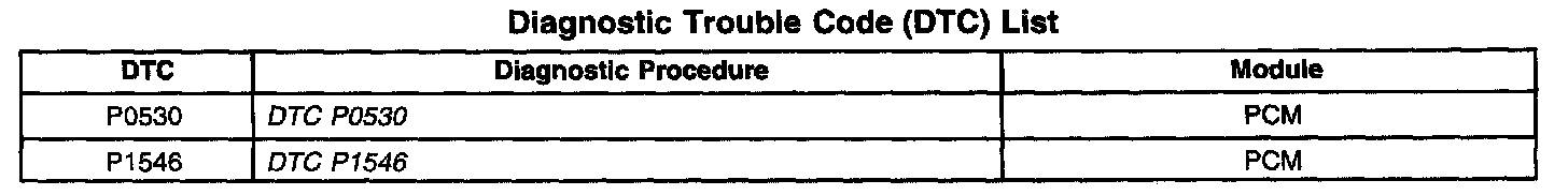 Diagnostic Trouble Code (DTC) List: