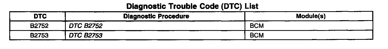 Diagnostic Trouble Code (DTC) List: