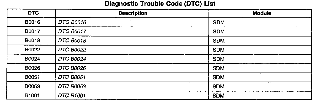 Diagnostic Trouble Code (DTC) List: