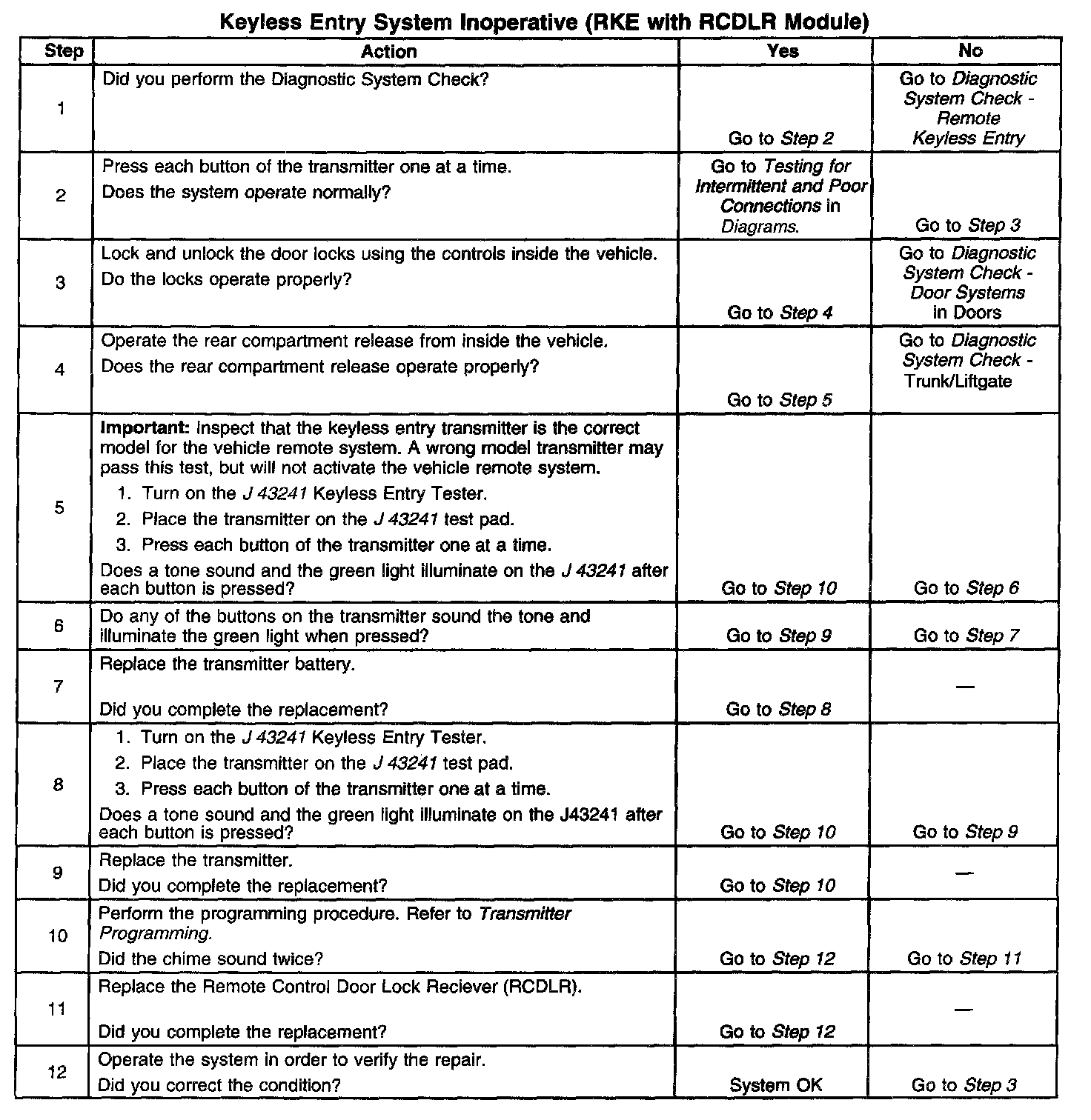 Keyless Entry System Inoperative (RKE With RCDLR Module)