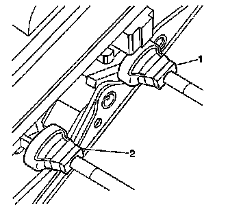 2. Squeeze the oblong connector (1, 2) for the vertical and the horizontal drive cables.