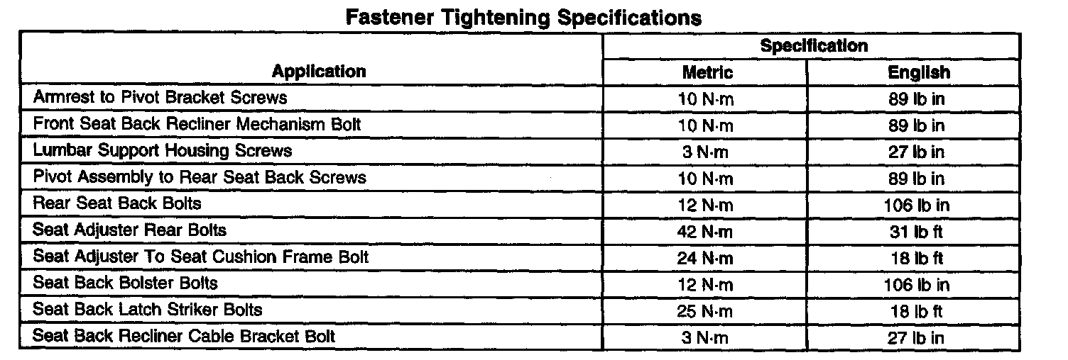 Fastener Tightening Specifications: