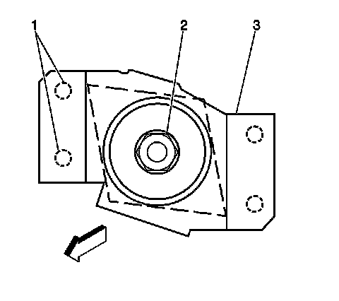 6. Use a chisel in order to break the spot welds (1) on one side of the frame crossmember nut retainer (3).