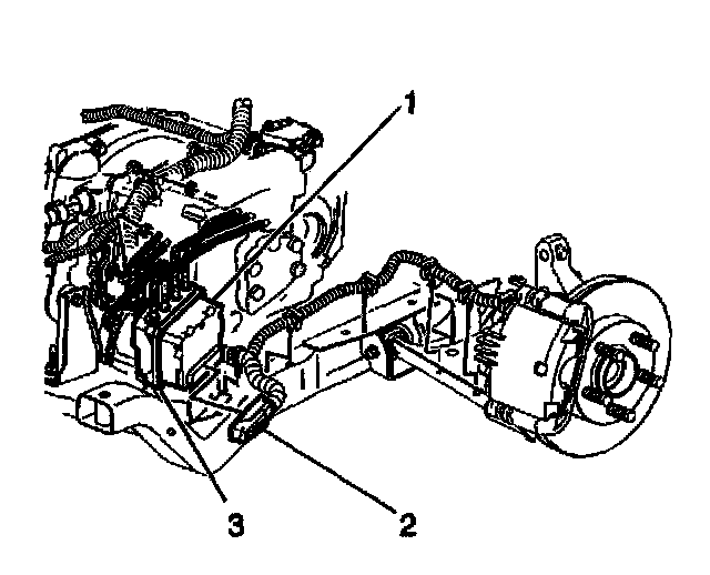 12. Remove the EBCM/BPMV assembly (3) from the vehicle.