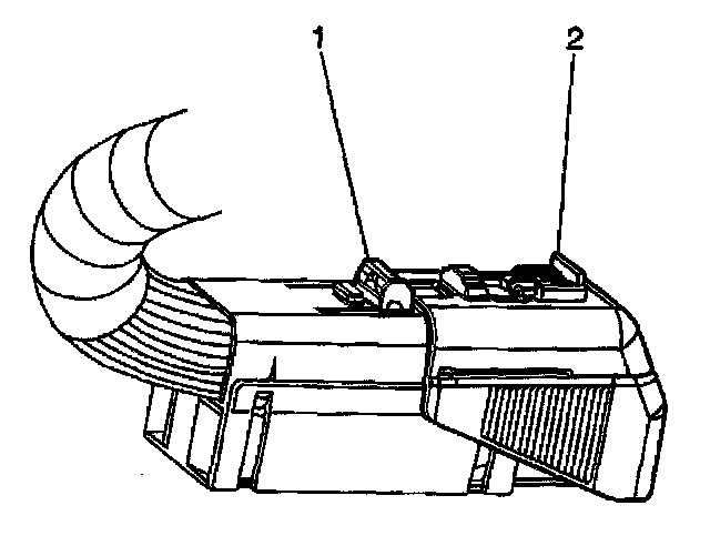 8. Disconnect the Connector Position Assurance (CPA) (2) from the EBCM connector.