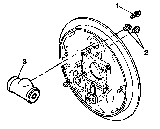6. Remove the wheel cylinder (3). Refer to Wheel Cylinder Replacement.