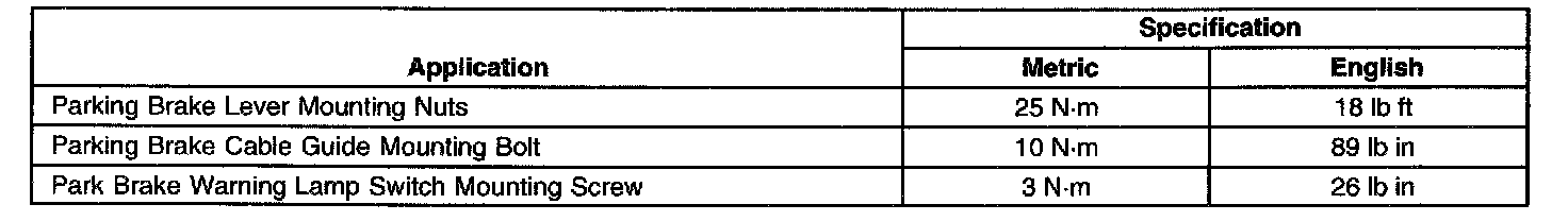 Parking Brake System: Specifications
