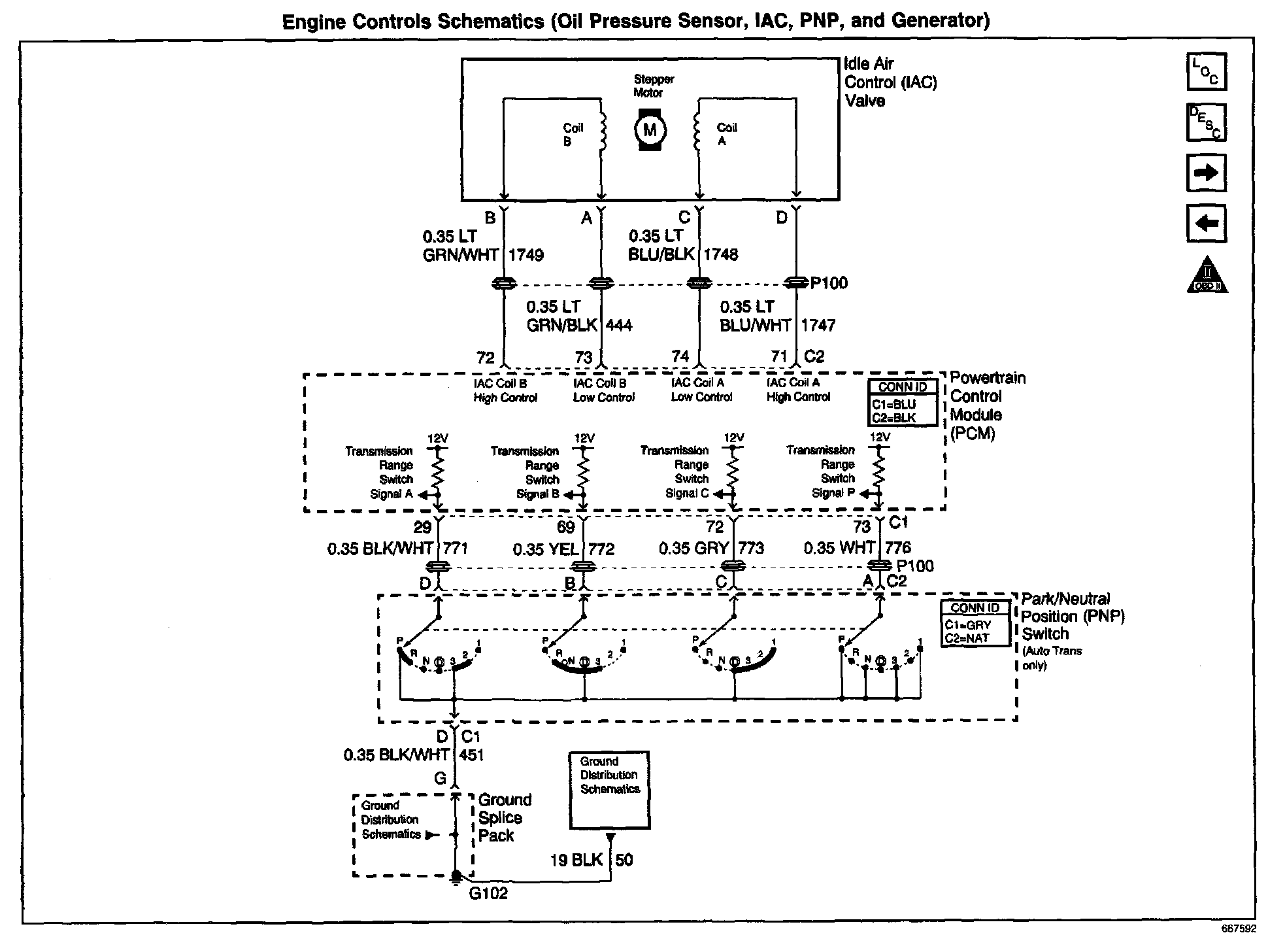 Engine Controls Schematics: Oil Pressure Sensor, IAC, PNP, And Generator: