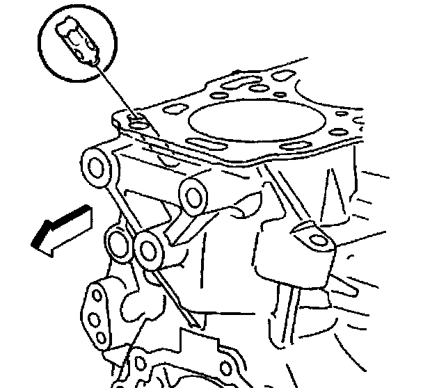 4. Remove the oil passage plug from the timing chain tensioner gallery.