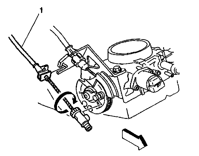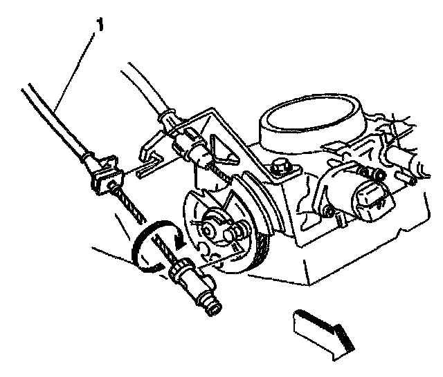 9. Remove cruise (1) and throttle cables from throttle body.