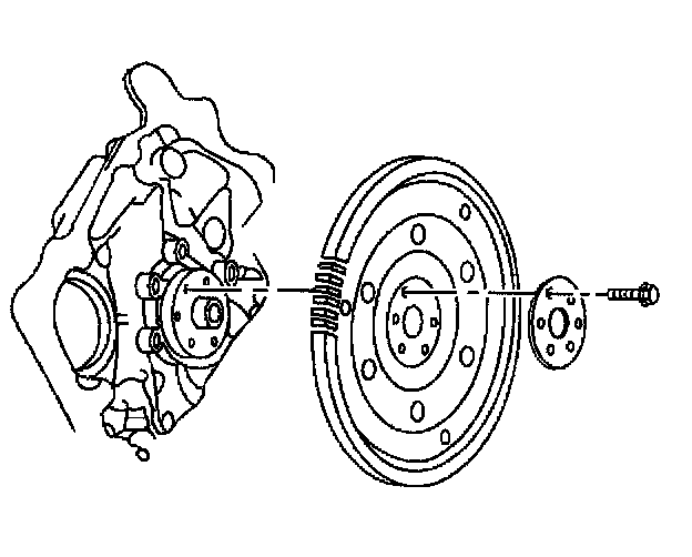 3. Install the flywheel, the retainer and the bolts.