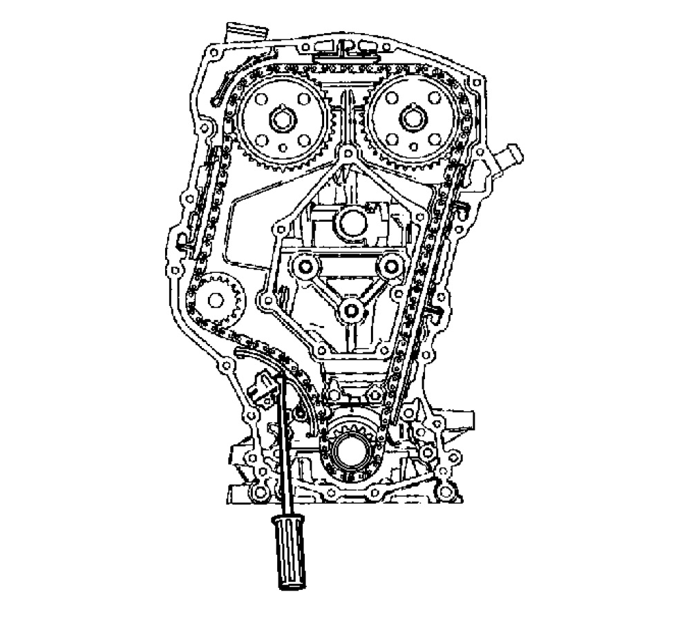 Notice: If the timing chain tensioner plunger is not released from the installation position, engine damage will occur when the engine is started.