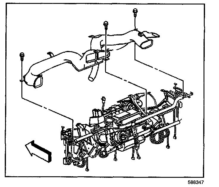 2. Remove the defroster duct. Refer to Air Outlet Replacement - Defroster.