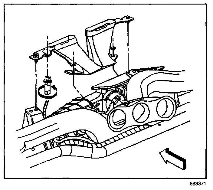 1. Align the defroster duct to the air distribution duct and the HVAC module assembly.