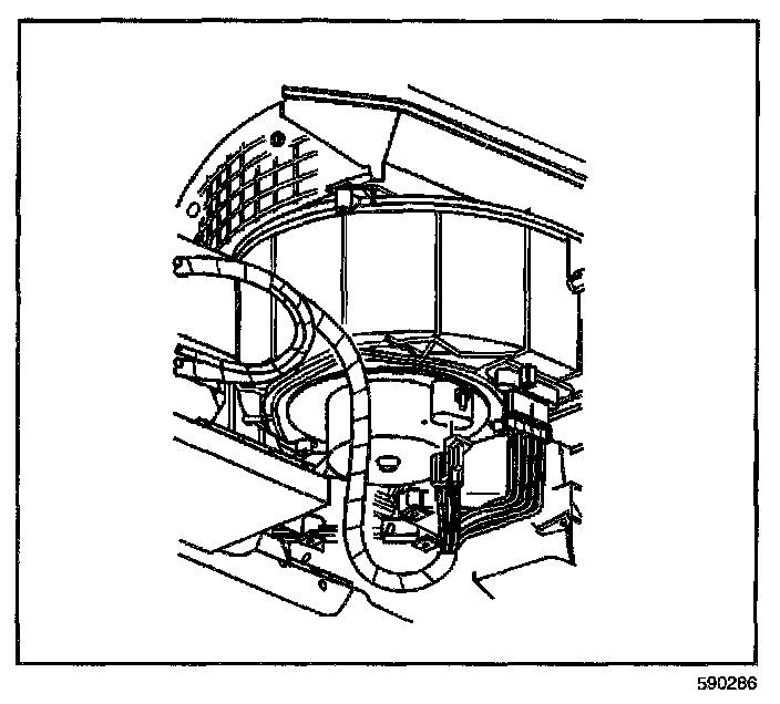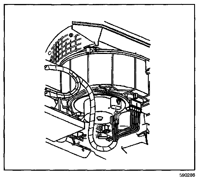 The blower motor and fan are located in the lower right hand corner of the HVAC module assembly. Service this component as an assembly only.