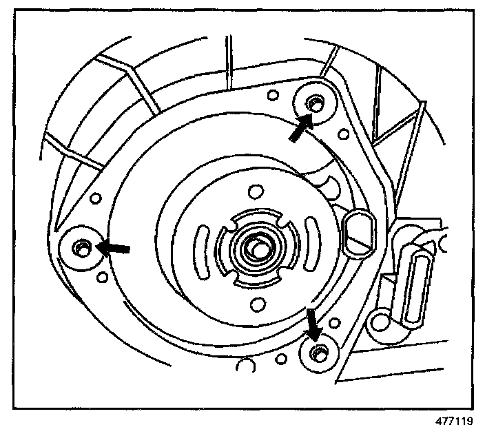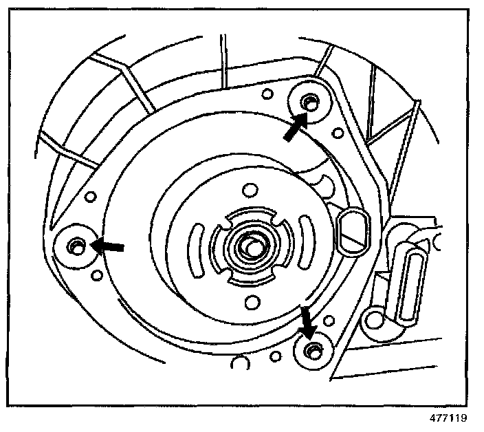 4. Remove the blower motor retaining screws.