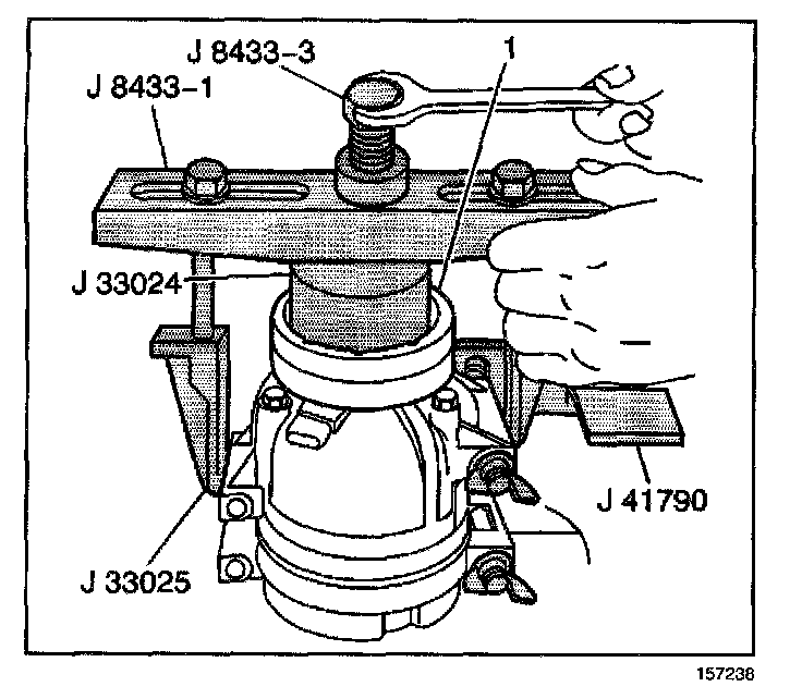 5. Turn the center forcing screw of the J 8433 to press the clutch coil onto the front head until the clutch coil is fully seated.